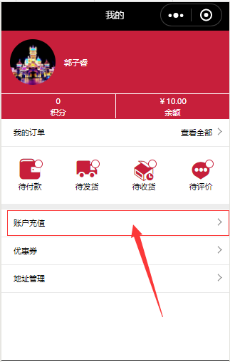 ⑨.在小程序中,点击“我的”-“会员中心”中会有“账户充值”,点击之后,进入账户充值页面,需要注意的是,小程序使用此功能时,需要从新发布才可以正常使用